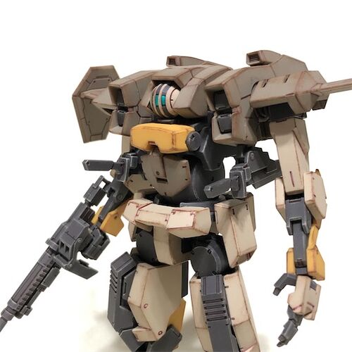 リビングモデリング部のあげいも@ageimo22です! 【境界戦記】より 『HG 1/72 ブレイディハウンド』を作りました! フロントビューカクカクしたフォルムがカッコいいです。 リアビュー航空機のような印象も感じられます。 ライフル標準的なライフル。腕周り…